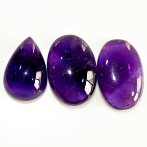 3 Pcs 126 Cts Natural Amethyst Cabochon Loose Gemstone Lot 34x20 24x15mm #15713