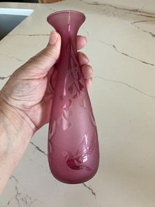 Kelsey Murphy Pilgrim Cranberry Glass Cameo Signed Hummingbird Vase 8"
