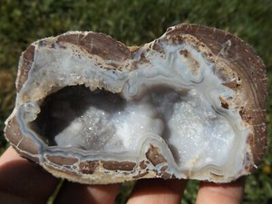 DIG-N-UTAH: MEXICAN COCONUT NODULE AGATE CRYSTAL GEODE POLISHED # L 232