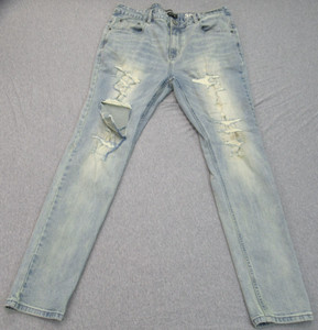 Serenade Fitted Jeans Mens Size 38x33 Blue Denim W/ Yellow Tint Slim Distressed