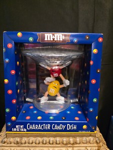 M & M's Red and Yellow Character Candy Dish Crystalized Acrylic Collector Series