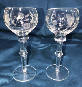 Lot of 2 ~ Vintage Hand Blown Etched Crystal Cordial/ Liqueur Stems