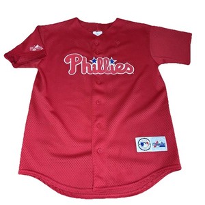 Vintage Majestic 90s Philadelphia Phillies #17 Rolen Jersey Red Mesh Youth L USA