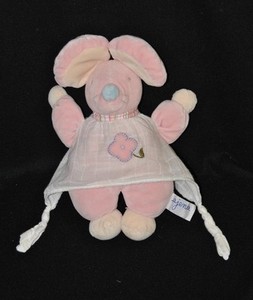 Peluche doudou souris rose AJENA robe lange blanc fleur brodée 24 cm TTBE