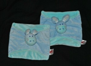 Peluche doudou lapin plat CARREFOUR bleu empreintes 4 nœuds TTBE