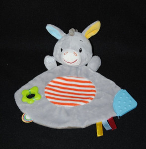Doudou plat âne MINIMI gris plaque dentition bleu vert orange NEUF