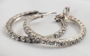 Vintage Tested Sterling Silver Crystal Hoop Earrings