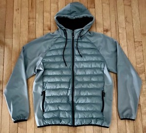 32 Degrees Heat Shirt Jacket Men Size Large Gray Puffer Full Zip Hooded EC 0583