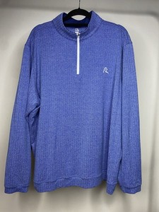 Rhoback Quarter Zip Pullover Men's XXXL 3XL Preppy Blue Herringbone Golf Stretch