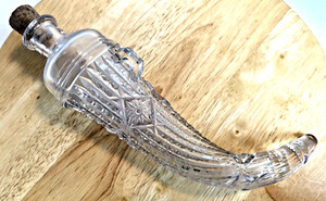 Vintage Crystal Glass Bottle Gun Powder Horn Empty Military Bar Home Decor