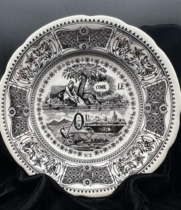 GIEN France Rebus Picture Puzzle Plate #2 Black & White 7 3/4"