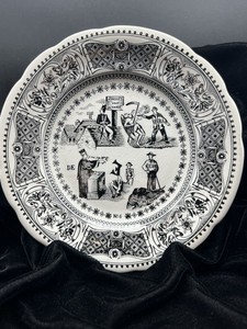 GIEN France Rebus Picture Puzzle Plate #2 Black & White 7 3/4"