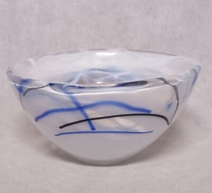 Kosta Boda Contrast Glass Bowl White Swirl Anna Ehrner 1742 6.25" x 3.375"