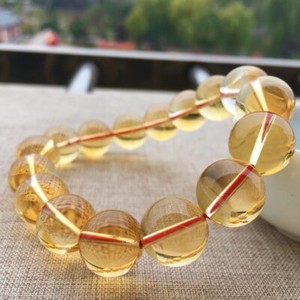 13.5mm Natural Yellow Citrine Quartz Crystal Round Beads Bracelet