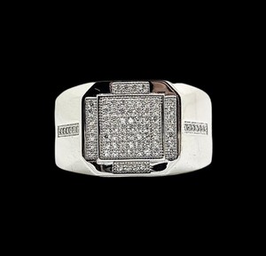 White gold finish Mens round cut created diamond Ring free postage gift box