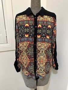 Yarra Trail Multicolour Black Abstract Button Up Collared Shirt Long Sleeve 16