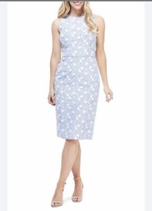 Maggie London Cecelia Floral Embroidered Appliqué Striped dress blue white US 10