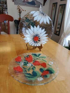 Sydenstricker 8.5" Fused Glass Artist Signed Salad/Dessert Plates Set of 2 EUC