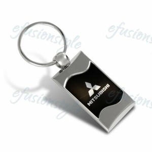 For Mitsubishi Black Rectangular Authentic Chrome Key Fob Key ring Keychain