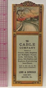 CABLE COMPANY PIANOS Adv Bookmark~Chicago IL Factories~Linn & Scruggs Decatur IL