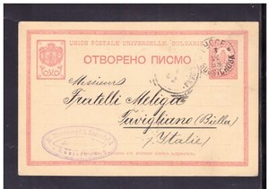 Cartolina Postale Postcard BULGARIA per Italia 10 c. 1898 WE1478