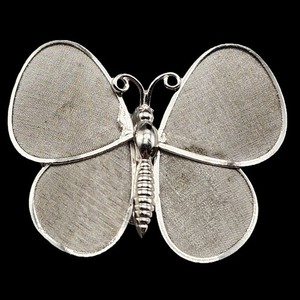 Vtg Large Mesh Butterfly Brooch Silver Tone Textured Bug Insect Lapel Pin Read