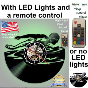 Swimming vinyl record wall clock w/wo LED back light swim suit trunks shirt art