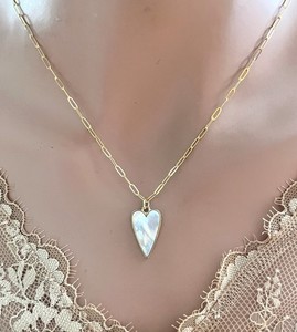 Pearl Heart Charm Necklace Shell Pearl Necklace Gold Necklace Large Heart Charm