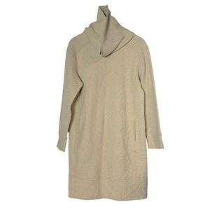 Lululemon On Repeat Textured Knit Dress Removable Cowl Neck Size 8 Beige Pockets