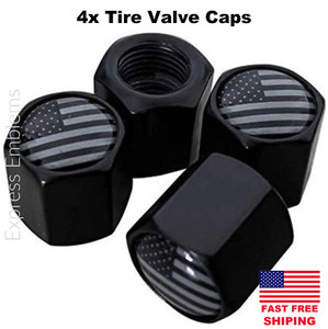 TIRE VALVE CAPS SET AMERICAN FLAG BLACK (4 pieces)