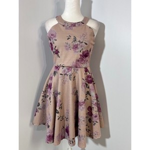 Knit Works Dress Size Juniors 16 Floral Rose Sparkle Halter Fit & Flare Party