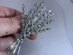 Flower Bouquet Aurora Rhinestones 1940s Vintage Silver Pin Brooch V-3728