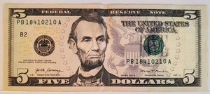 Trinary $5 Five Dollar Bill Fancy Serial Number