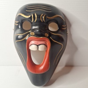 Hand Carved Bolognese Mask Hand Painted Red Black And Gold