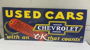 Chevrolet Used cars Porcelain Enamel Sign 36 x 15 Inches 1 Sided