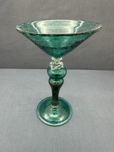 CLIFF GOODMAN Hand Blown Glass 8" MARTINI GLASS Teal Green SIGNED 2003