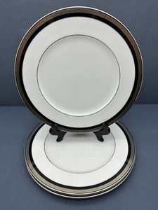 Waterford COLLEEN Fine Bone China 10 3/4" DINNER PLATES Platinum Black SET OF 3