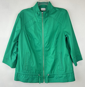 Chicos Jacket Womens L Kelly Green 2 Zip Zenergy Vacation Career Preppy Casual