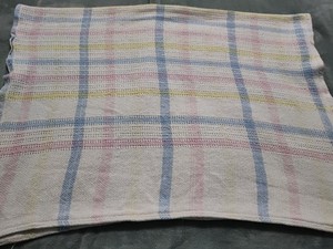 Vintage Woven Baby Blanket Pastel Plaid Pink Blue Yellow Open Weave Waffle