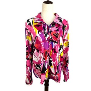 Laura Ashley Tropical Colors Sequined Full Zip Jacket Size M
