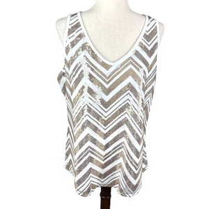 New York and Company New White Tank Gold Tone Sequin Chevron Size L NWT