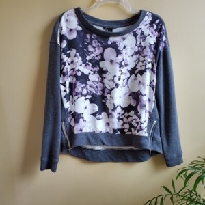 Banana Republic Women's Gray Purple Floral Silk Cotton Sweater Zippers Small