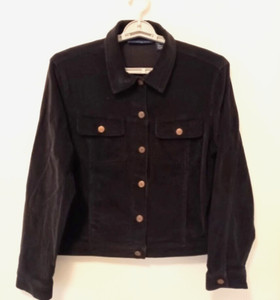 Vintage Bill Blass Jeans Corduroy Black Jacket w/Stretch 6 Pockets Women Size L
