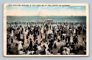 Vintage 1923 Findley Lake NY Crowded Bathers Postcard with Reward Text