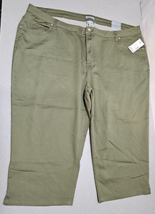 NWT Catherines Sateen Stretch Olive Green Size 32W (50x21) Capris Short/Crop