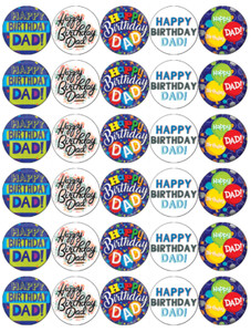 Happy Birthday Dad x 30 Cupcake Toppers Edible Wafer Paper Fairy Cake
