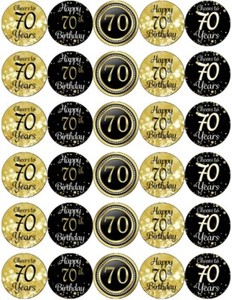 70th Birthday Black And Gold x 30 Cupcake Toppers Edible Wafer Paper Toppers