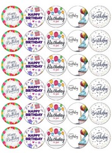 Happy Birthday x 30 Cupcake Toppers Edible Wafer Paper Fairy Cake Toppers Mixed
