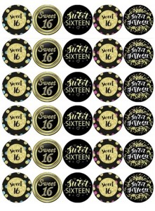 Sweet 16th Birthday x 30 Cupcake Toppers Edible Wafer Paper Fairy Cake Toppers