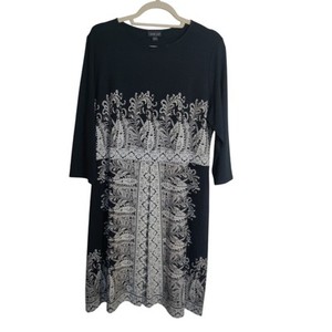 J. Jill Wearever Collection Black Tan Paisley Print Dress Size Large